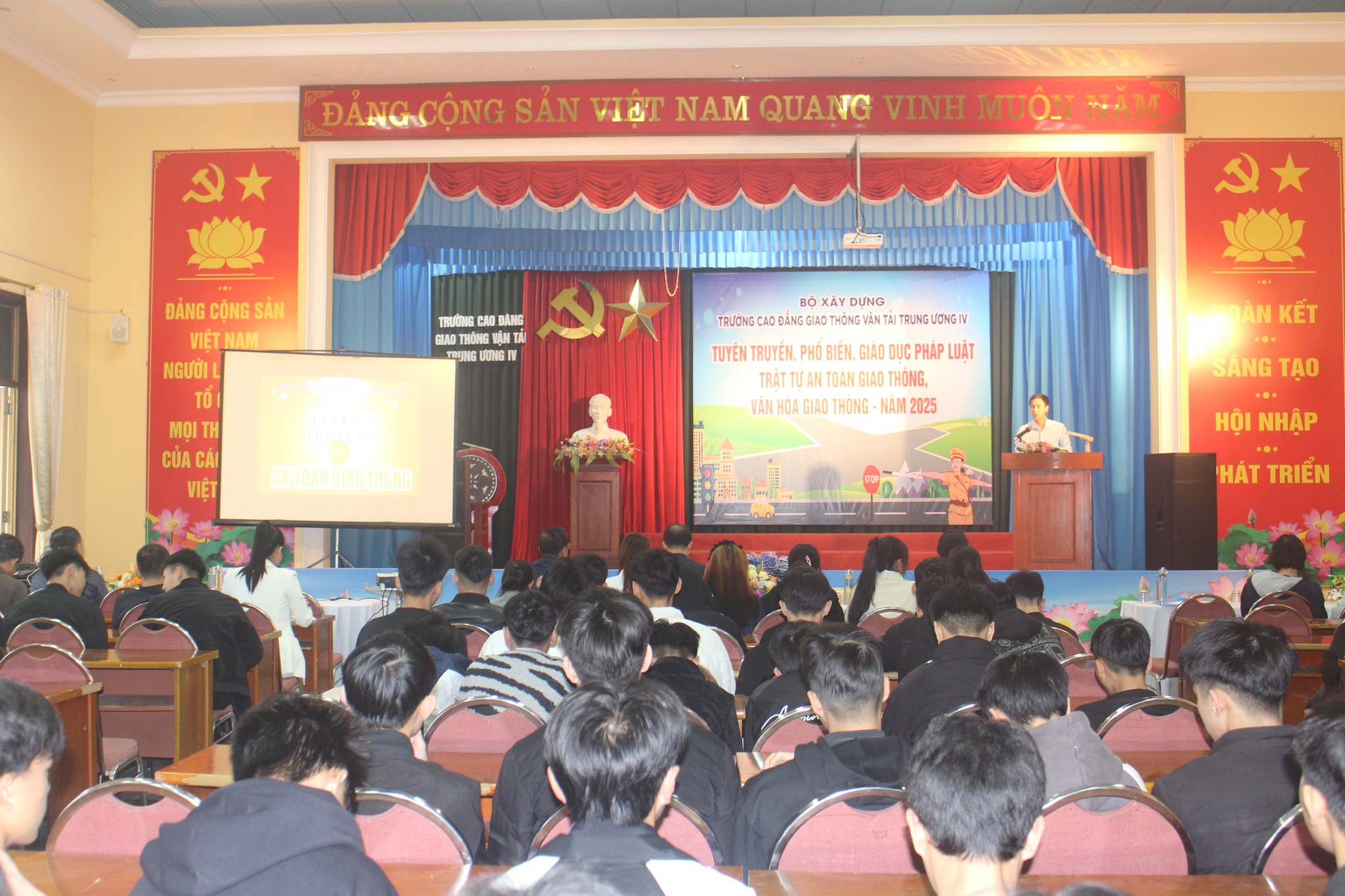 Sáng ngày 04/11/2025, Trường Cao đẳng Giao thông vận tải Trung ương IV phối hợp cùng Công an Phường Vinh Hưng tổ chức Lễ phát động phong trào thi đua học tập tốt, rèn luyện kỷ luật tốt, chào mừng Ngày Nhà giáo Việt Nam 20/11 và tuyên truyền, phổ biến pháp luật về phòng chống ma túy, an ninh mạng, phòng chống các hành vi vi phạm pháp luật về pháo nổ.